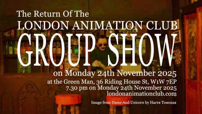The Return Of London Animation Club to The Green Man, 36 Riding House Street on 24th November 2025